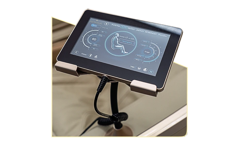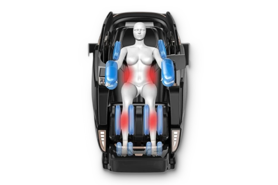 Sustav s 8 valjaka i 82 zračna jastuka istovremeno masira cijelo tijelo. Dvostruki mehanizam omogućuje precizne pokrete prilagođene kralježnici, uz limfnu drenažu. Inteligentno skeniranje tijela osigurava točnost svakog pritiska, a upravljački sustav olakšava brzi pristup postavkama, uz stanicu za bežično punjenje.